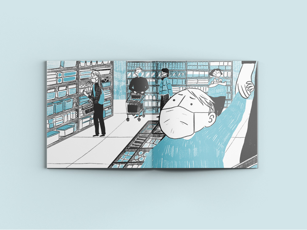 Realización de ilustraciones para una publicación editorial para el público infantil que buscaba explicarle el COVID a los niños.