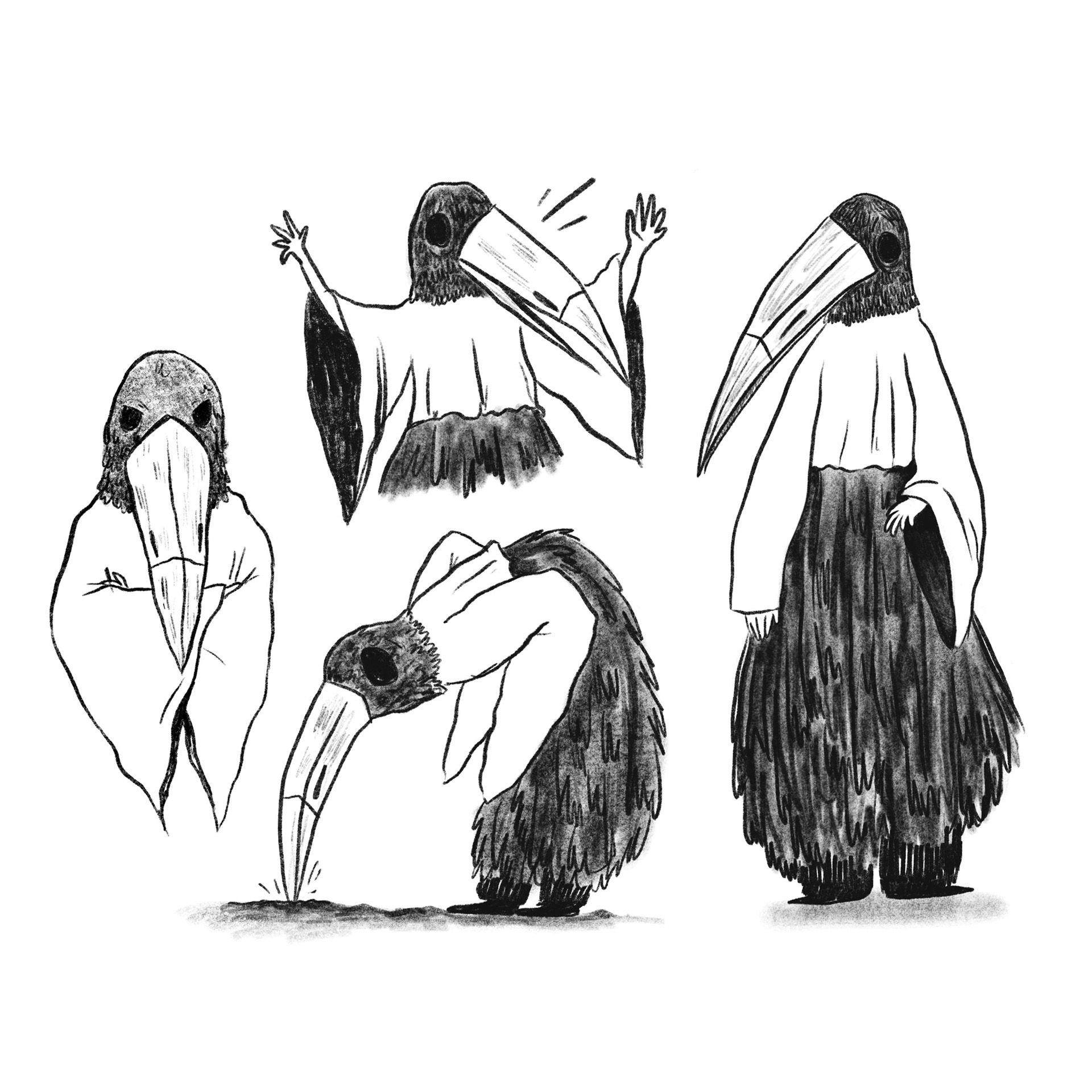 Creamos una serie de bocetos iniciales para los personajes.